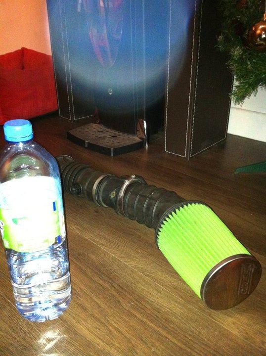 Voila la barre posée, qui dailleur ma bien posé des problemes, d'une on dirait quelle est à l'envers et de 2 elle ecrase mon debimetre qui dailleur a été fendu a cause de sa